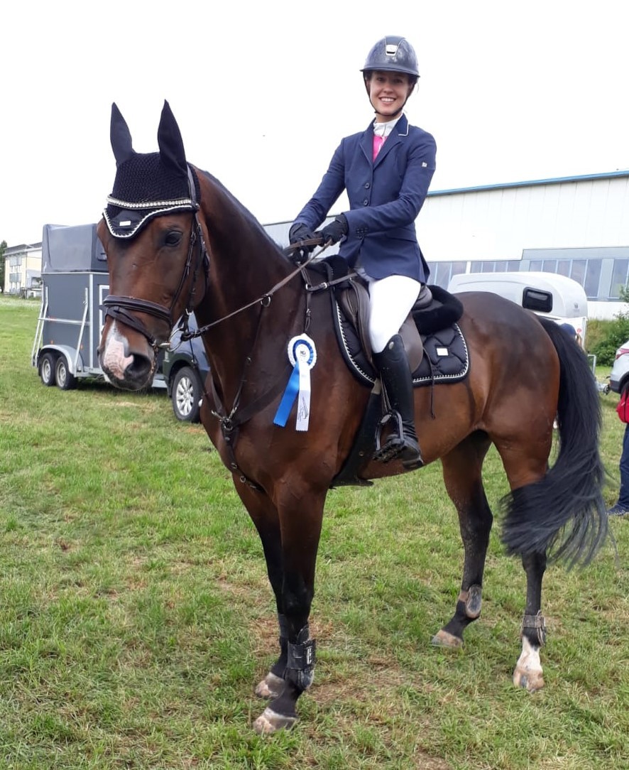 Beim Turnier in Killingen vom 12.-15.08.2021 belegte sie in der Springprüfung Kl. M* den 5. Platz mit Coral.
